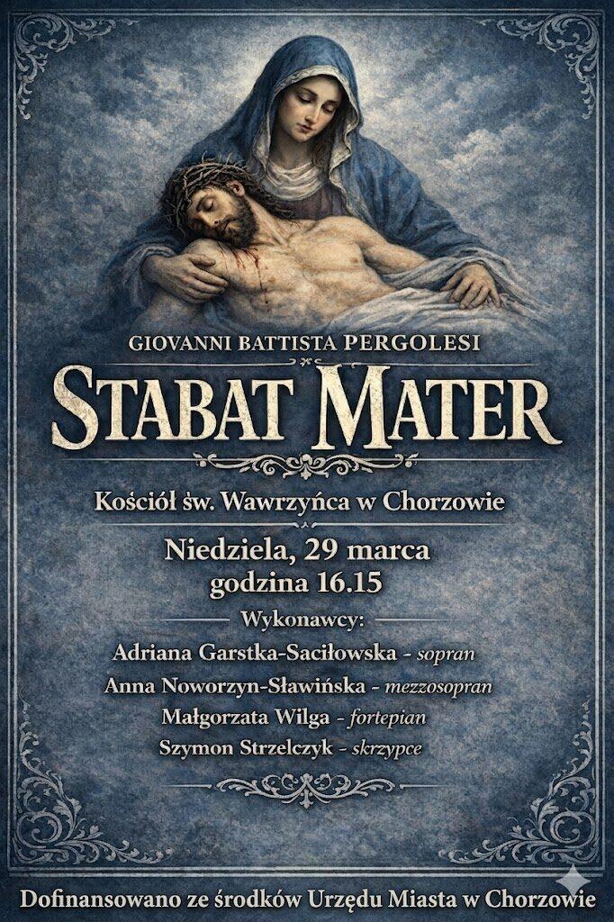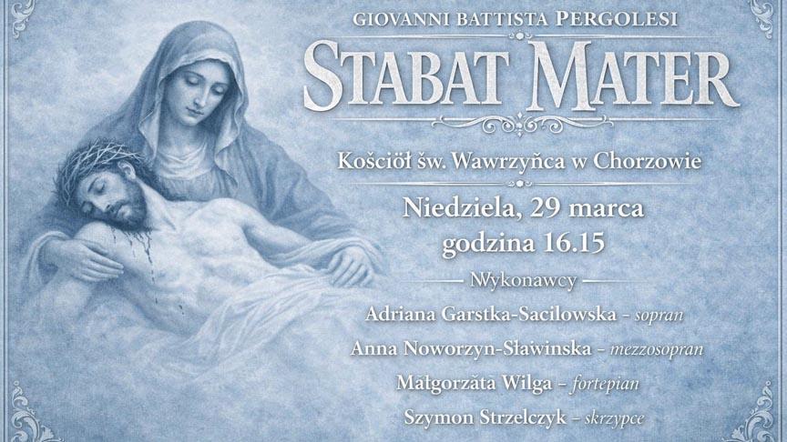 Zapraszamy na wielkopostny koncert „Stabat Mater” – jest to utwór osiemnastowiecznego kompozytora Giovanni Pergolesiego, skomponowany do tekstu średniowiecznej sekwencji gregoriańskiej, ukazującej mękę i śmierć Zbawiciela z perspektywy cierpienia jego Matki.